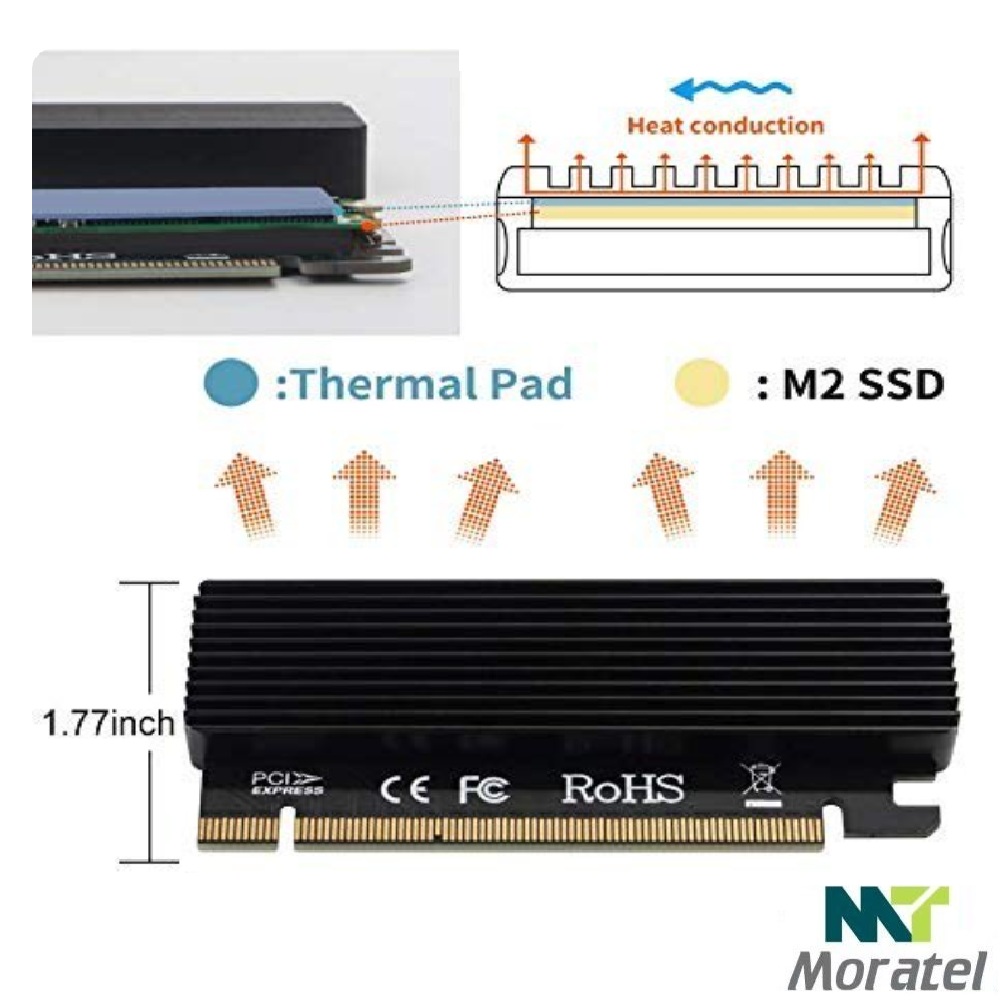 رابط: PCIe 3.0/4.0 x4 (سازگار با x8/x16) نوع اسلات M.2: M-Key NVMe SSD سایزهای پشتیبانی: 2230 / 2242 / 2260 / 2280 سرعت انتقال: تا 32Gbps (PCIe Gen3 x4) یا بالاتر در Gen4 دارای هیتسینک آلومینیومی برای دفع حرارت نصب آسان، بدون نیاز به درایور سازگار با سیستمعاملهای Windows / Linux