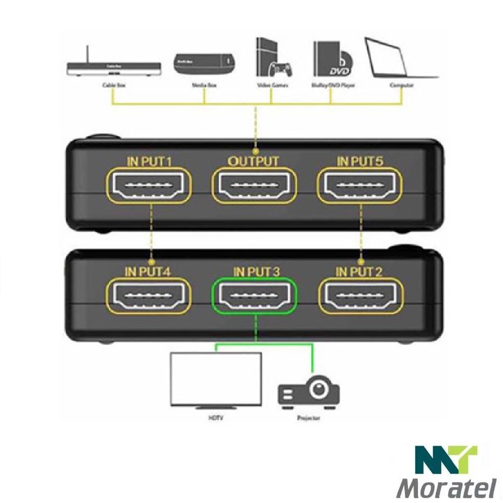 برند: MoraTel تعداد پورتها: 5 ورودی HDMI و 1 خروجی HDMI رزولوشن پشتیبانی شده: تا 4K UHD (3840x2160) با نرخ تازهسازی 30Hz پشتیبانی از نسخه: HDMI 1.4 / 1.3 ویژگی: دارای کنترل از راه دور نصب: ساده و آسان بدون نیاز به درایور سازگاری گسترده: مناسب برای انواع تلویزیونها، مانیتورها، پروژکتورها و گیرندههای دیجیتال