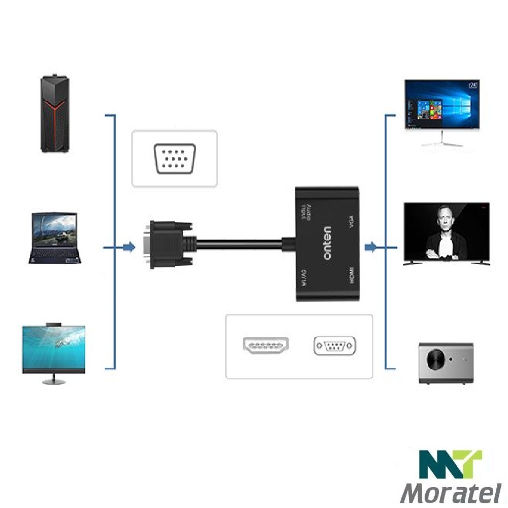 کابل تبدیل VGA به HDMI + VGA مدل OTN-5138HV یک راه‌حل حرفه‌ای و کاربردی برای نمایش همزمان تصویر از یک منبع VGA روی دو نمایشگر با ورودی HDMI و VGA است. این دستگاه قابلیت انتقال تصویر با کیفیت Full HD 1080P را دارد و همچنین از ورودی صدای 3.5 میلی‌متری پشتیبانی می‌کند تا تجربه‌ای کامل از ویدئو و صدا را برای شما فراهم کند.