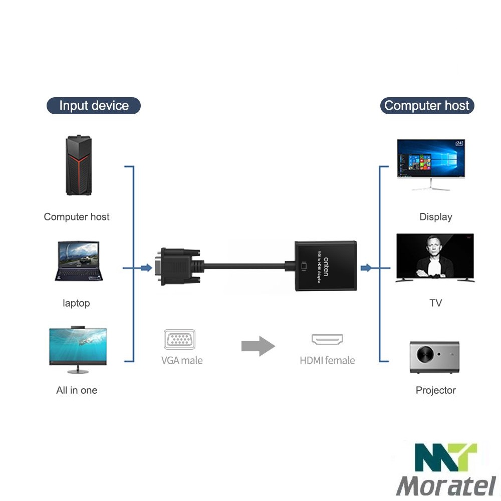 با استفاده از OTN-5138، می‌توانید کامپیوترهای قدیمی یا دستگاه‌های مجهز به خروجی VGA را به نمایشگرهای مدرن مانند تلویزیون‌ها، مانیتورها یا پروژکتورهای HDMI متصل کنید. این محصول بدون نیاز به نصب درایور و با طراحی ساده و کاربرپسند، گزینه‌ای ایده‌آل برای محیط‌های کاری، آموزشی و خانگی است.